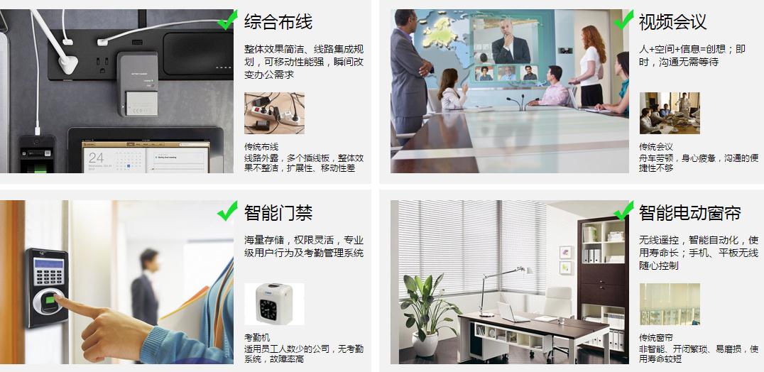 智能弱電集成整體解決方案,不僅整合了空間資源,創(chuàng)建共享互動(dòng)空間,提升員工工作效率,而且從視覺上實(shí)現(xiàn)了空間清凈的風(fēng)格,進(jìn)而提升企業(yè)的形象與價(jià)值。